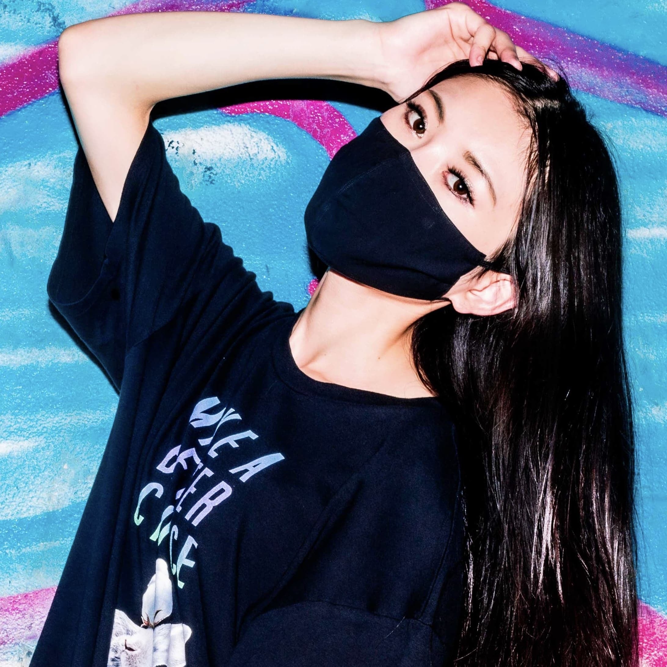 ・完全オリジナルのパターンで制作。両サイドに入れたタックによって布の広がりを抑え、小顔効果によりマスクをかっこよく装っていただけるようひと手間加えました。